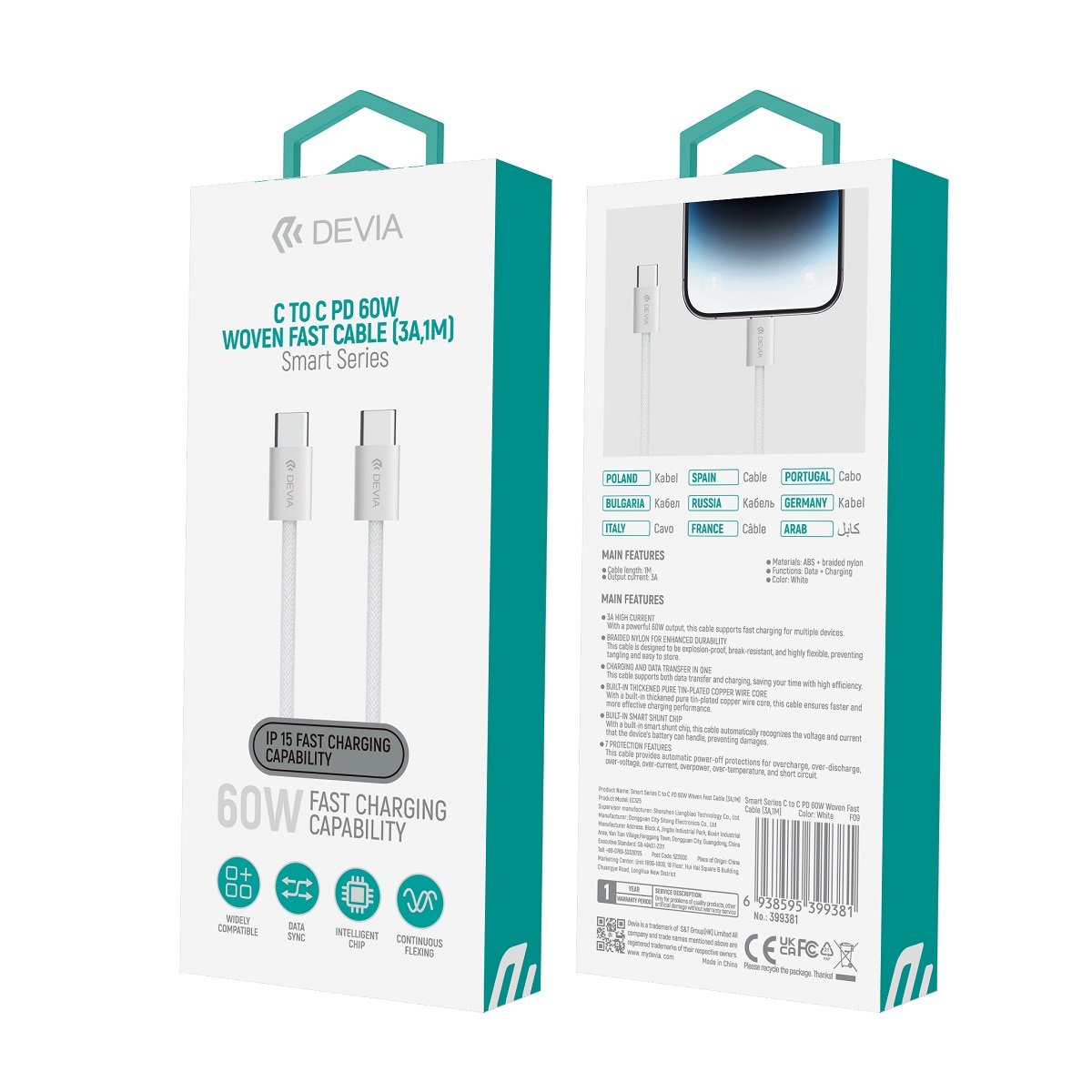 Devia cable Smart EC325 PD USB-C – USB-C 1m 60W 3A white